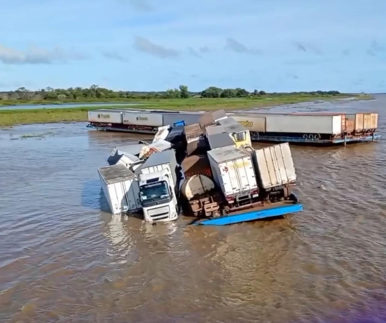 Até o momento, não há informações sobre danos ambientais ou a quantidade exata de veículos e cargas que estavam na embarcação.