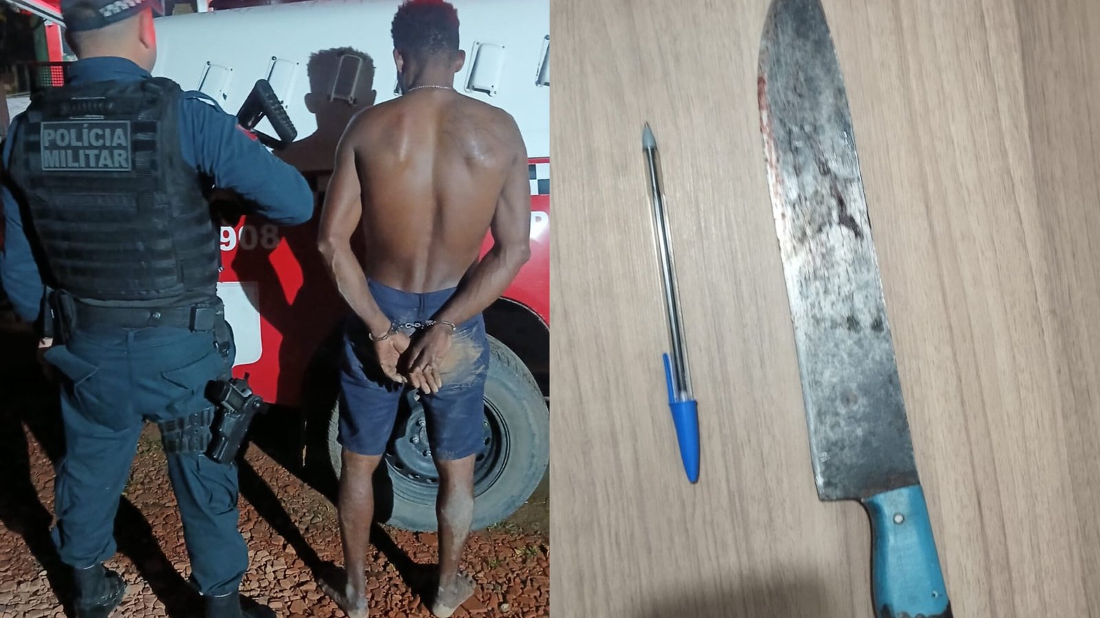 O patrulheiro realizou a abordagem e percebeu que o homem tinha as mãos sujas de sangue. Ao ser questionado, Raimundo confessou que havia esfaqueado a vítima e indicou à guarnição onde havia descartado a arma do crime — uma faca tipo peixeira, com cerca de 40 centímetros e cabo azul, encontrada na rua Barbosa, em frente ao Bar do Paulo Gordo.