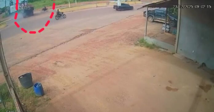 Imagens de câmeras de segurança flagraram o exato momento da colisão envolvendo um motociclista e uma caçamba pertencente à Prefeitura Municipal de Itaituba (PMI), por volta das 09h02 da manhã desta terça-feira (23), no perímetro urbano da BR-230 (Rodovia Transamazônica), precisamente na entrada do bairro da Paz, em Itaituba, no sudoeste do Pará.