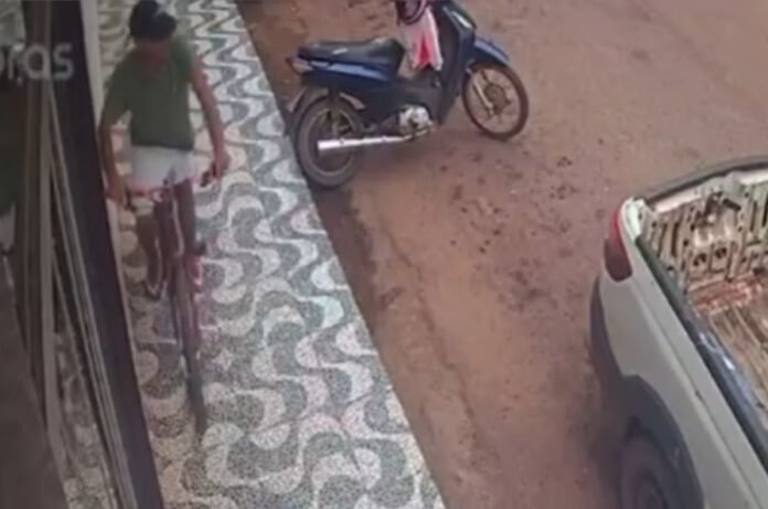 Câmeras de segurança registraram nesta quinta-feira (18), o momento em que um homem furtou uma sacola que estava em uma motocicleta estacionada em frente a uma loja, em Itaituba, sudoeste do Pará.
