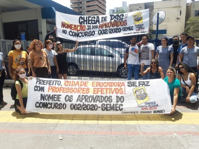 Trabalhadores concursados que fazem parte do Cadastro de Reserva da Secretaria de Educação da Prefeitura de Belém (SEMEC) realizaram nesta quarta-feira 31 de agosto de 2022, mais uma manifestação em frente a Semec exigindo a nomeação para os cargos de professores e técnicos pedagógicos do concurso 02/2020.