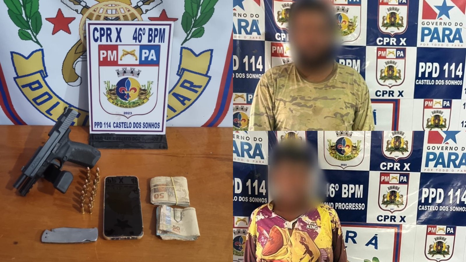 Por volta das 17h30 desta quinta-feira (7), durante a Operação Athena, a Polícia Militar prendeu dois homens por porte ilegal de arma de fogo no distrito de Castelo de Sonhos, sudoeste do Pará.