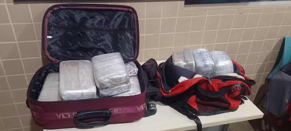 Com um dos suspeitos, foram apreendidos 17,340 kg da substância, distribuídos em 16 tabletes e uma porção menor. Com o outro, a polícia encontrou 13,840 kg de skank, além de três celulares.