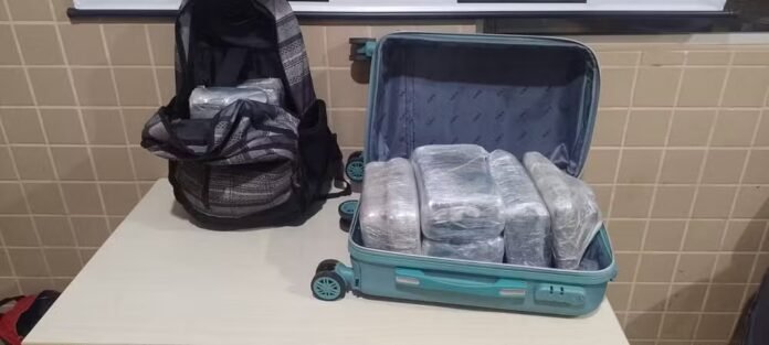 Com um dos suspeitos, foram apreendidos 17,340 kg da substância, distribuídos em 16 tabletes e uma porção menor. Com o outro, a polícia encontrou 13,840 kg de skank, além de três celulares.