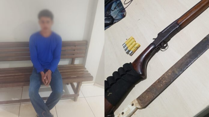 Segundo as informações, o gerente de uma fazenda, identificado como Edilson Marcos, estaria sendo ameaçado por um homem identificado como Henrique Gabriel Mendonça, que portava uma espingarda.