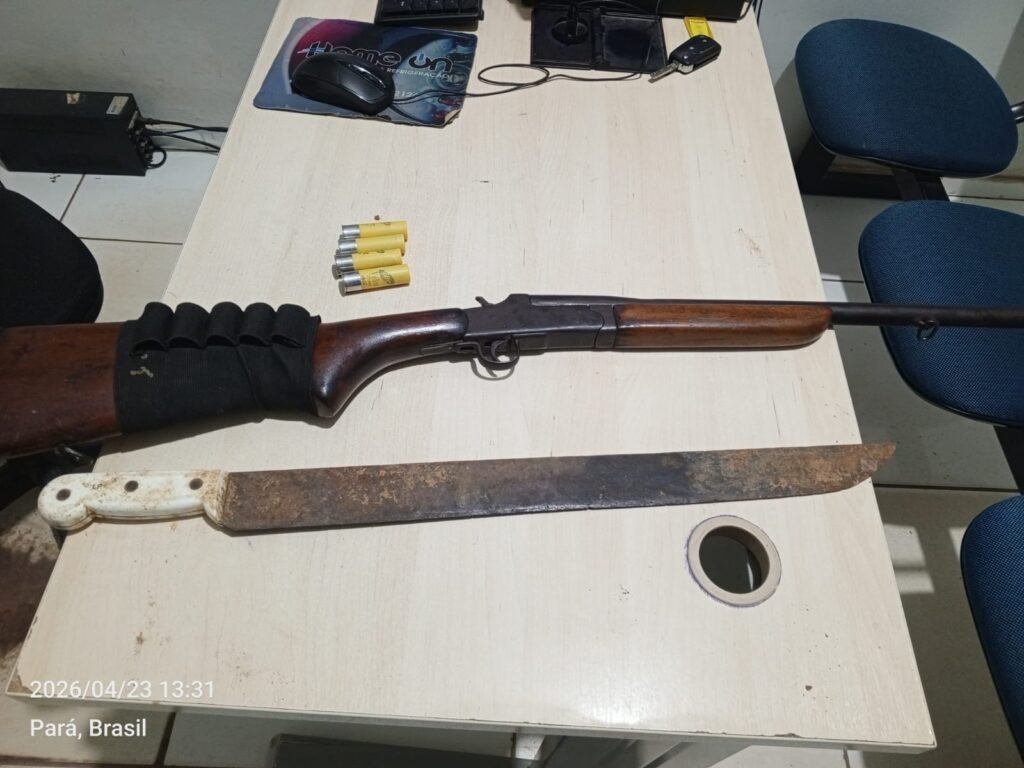 Por volta das 11h16 desta quinta-feira (23/04/2026), uma guarnição da Polícia Militar foi acionada pela central após denúncia de ameaça com arma de fogo no Travessão KM 165 Sul, a cerca de 10 km da faixa, na zona rural de Uruará, no sudoeste do Pará.