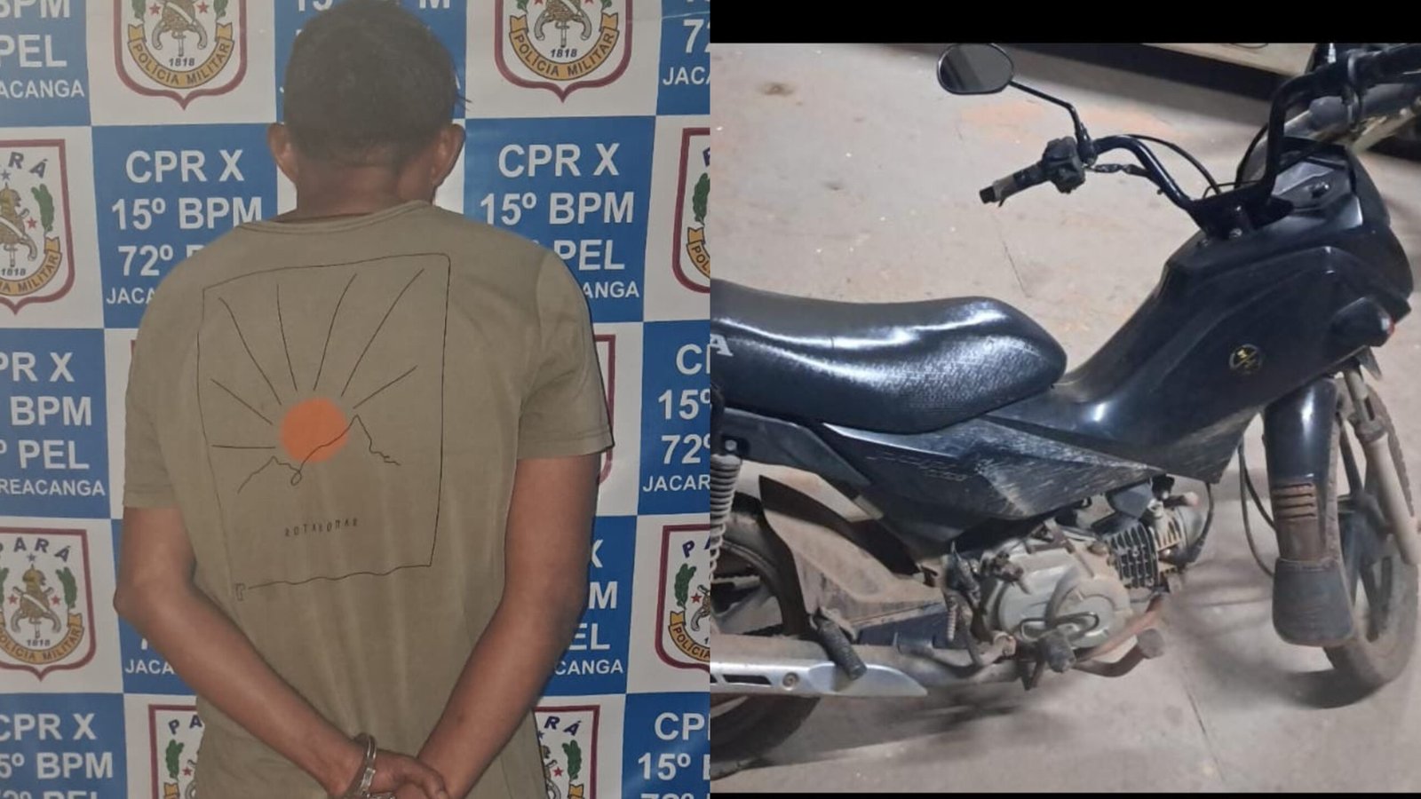Suspeito foi abordado conduzindo uma Honda Pop 100 sem placa; veículo tinha registro de furto, segundo consulta da Polícia Militar.