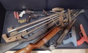 Foram realizadas buscas e os policiais encontraram armas de fogo, além de munições e partes de outras armas, que segundo ele, eram de armas antigas que se danificaram.