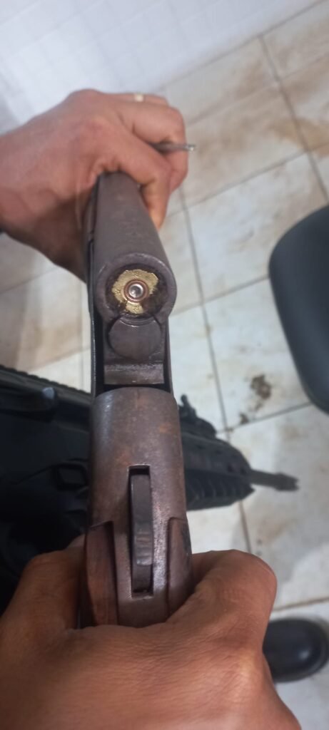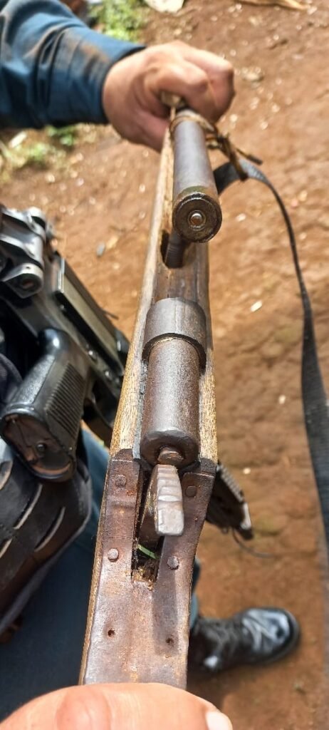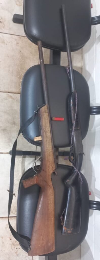 Durante as buscas, os policiais recuperaram uma espingarda calibre 20, com um cartucho deflagrado, e uma arma caseira calibre 28, com um cartucho intacto, ambas ocultadas na plantação de cacau.