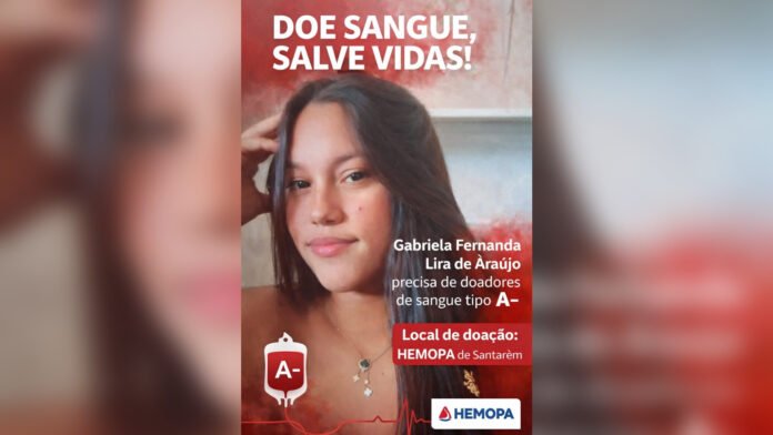 A jovem Gabriela Fernanda Lira de Araújo, de 24 anos, encontra-se internada no Hospital Regional de Itaituba, no sudoeste do Pará, em estado grave, necessitando urgentemente de doações de sangue para a continuidade do tratamento.