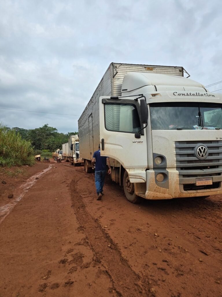 De acordo com caminhoneiros, vários veículos pesados atolaram ainda na madrugada, bloqueando parte da pista e impedindo a passagem de outros caminhões e carros menores. A fila de veículos já se estende por vários quilômetros, causando revolta entre os motoristas e os moradores da região.