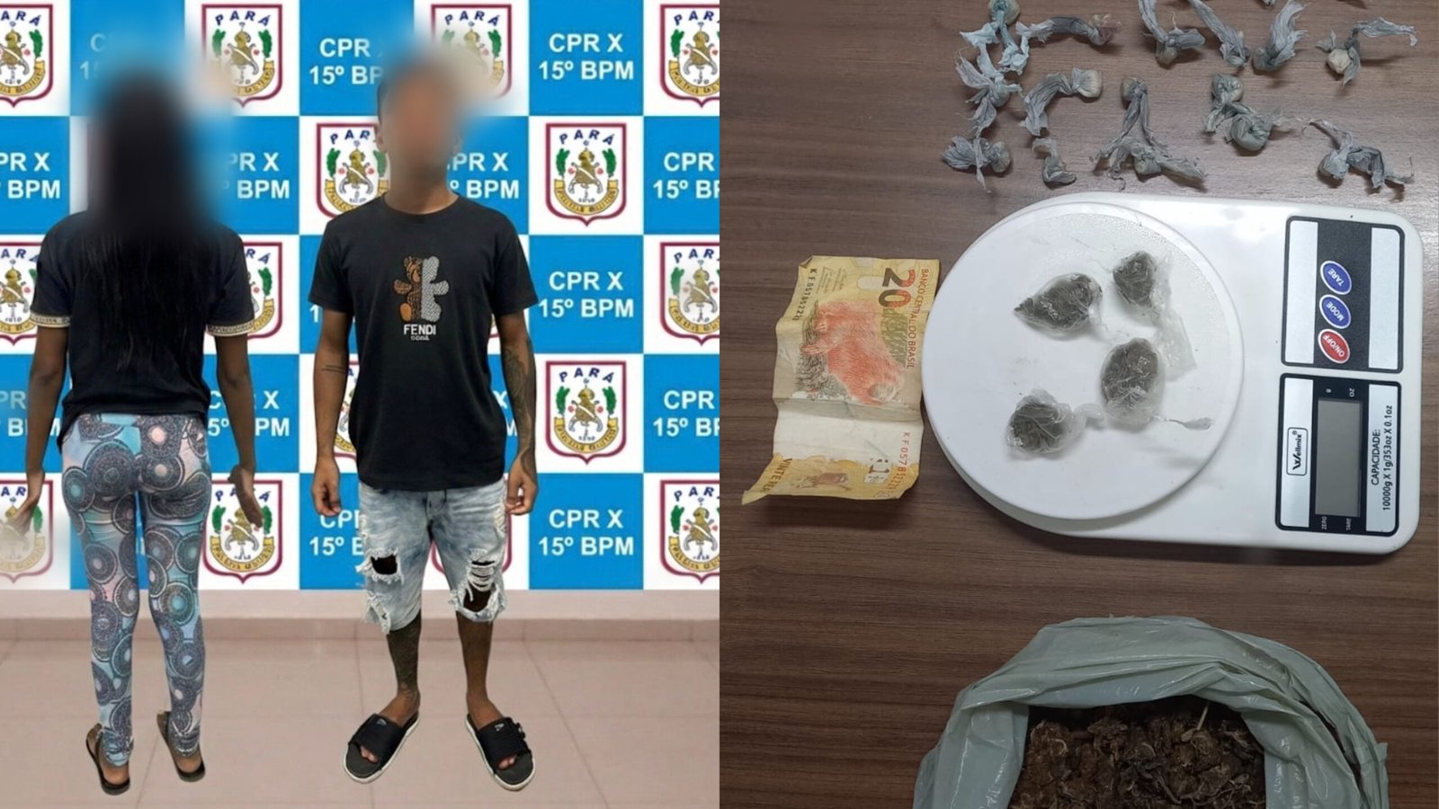 A guarnição do Motopatrulhamento Águia conduziu à 19ª Seccional Urbana da Polícia Civil um homem identificado como Silas da Silva Ferreira, (23 anos), e uma adolescente identificada pelas iniciais H.S.L.D.S. (17 anos), pela prática do crime de tráfico de drogas. O fato ocorreu na 3ª Rua do bairro Sol Nascente, em Itaituba, no sudoeste do Pará.