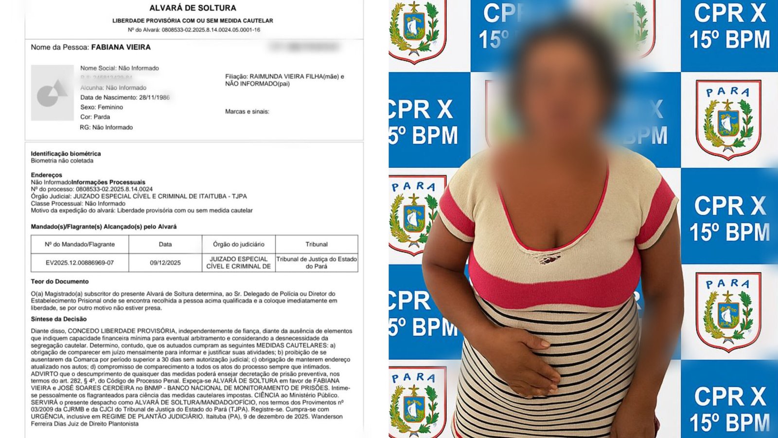 Apesar das provas e do histórico da dupla, Fabiana Vieira foi liberada. No alvará, o magistrado afirma não haver elementos que justificassem a prisão preventiva naquele momento, concedendo liberdade provisória independentemente de fiança.