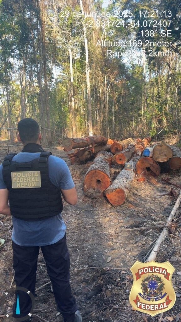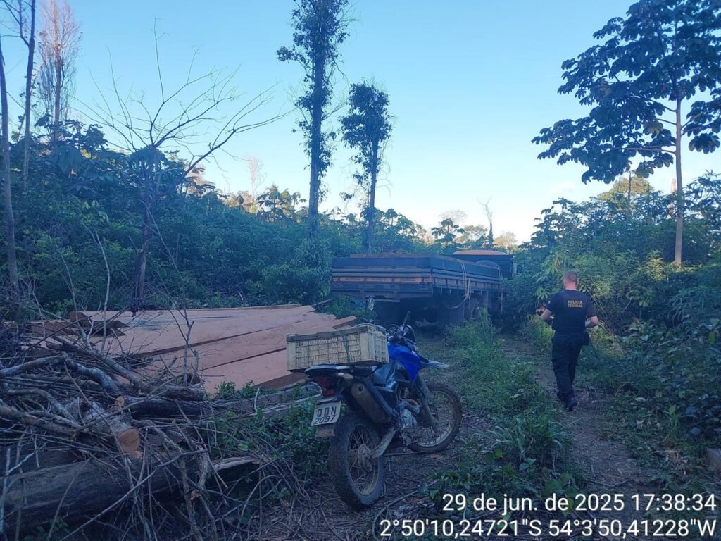 A Polícia Federal deflagrou, neste domingo (29), uma operação de combate ao desmatamento ilegal no Projeto de Assentamento Chapadão, situado na Gleba Federal Pacoval, zona rural do município de Santarém, no oeste do Pará. A ação resultou no flagrante de uma atividade criminosa de extração ilegal de madeira, com a apreensão de maquinário pesado, armas ambientais e a prisão de quatro indivíduos.