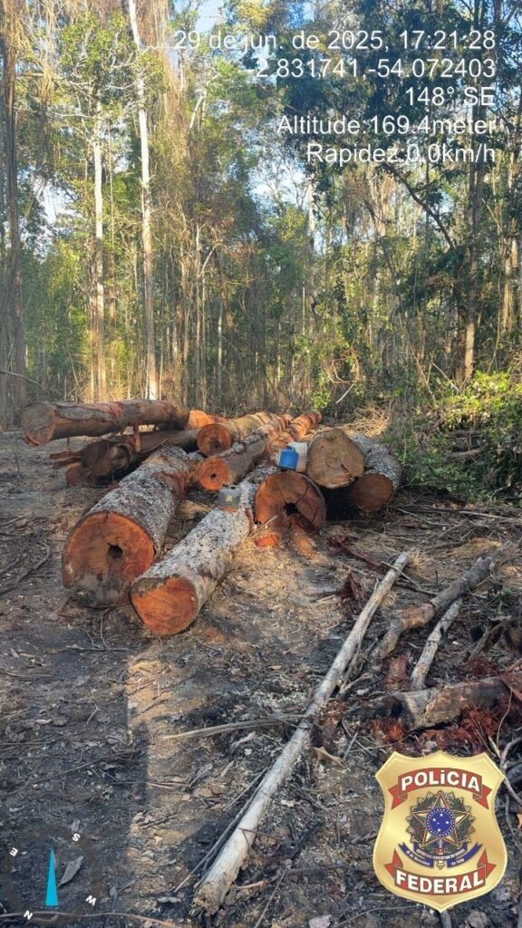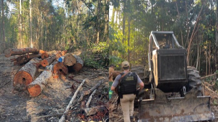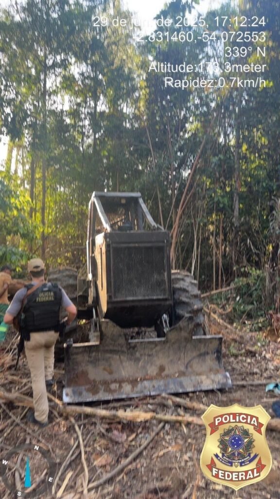 Durante a operação, os agentes federais localizaram e apreenderam um veículo do tipo Skidder — equipamento comumente utilizado para o arraste de toras em áreas de exploração florestal — além de motosserras, toras de madeira extraída ilegalmente e um caminhão escondido na mata, já carregado com madeira serrada, evidenciando a atuação organizada dos infratores.
