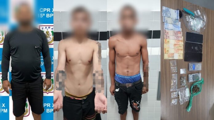 Abordagens do MotoPatrulhamento Águia e da 1ª CIME resultaram na detenção de três suspeitos e na apreensão de entorpecentes e materiais usados no tráfico.