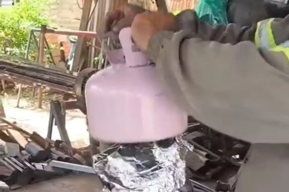 Durante a fiscalização de bagagens de passageiros suspeitos, os policiais abordaram um homem que transportava uma mala e dois cilindros de gás usados em sistemas de ar-condicionado. Ao perceberem sinais de adulteração nos recipientes, os militares conduziram o material até uma serralheria, onde foi possível realizar a abertura com segurança.