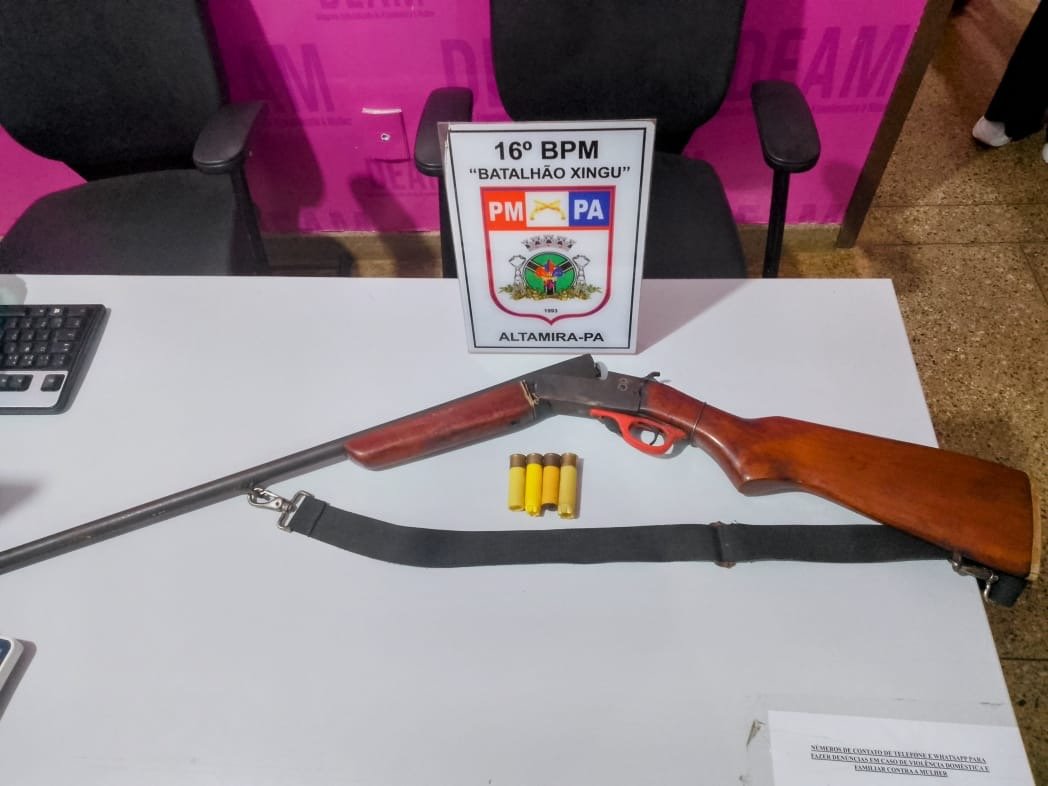 No endereço indicado, os policiais fizeram contato com a vítima, que relatou ter sido ameaçada pelo companheiro, José Eugênio Guedes Alves, com uma espingarda calibre 20. Após buscas nos arredores da residência, o acusado foi localizado em posse da arma e de quatro cartuchos — dois intactos e dois deflagrados.