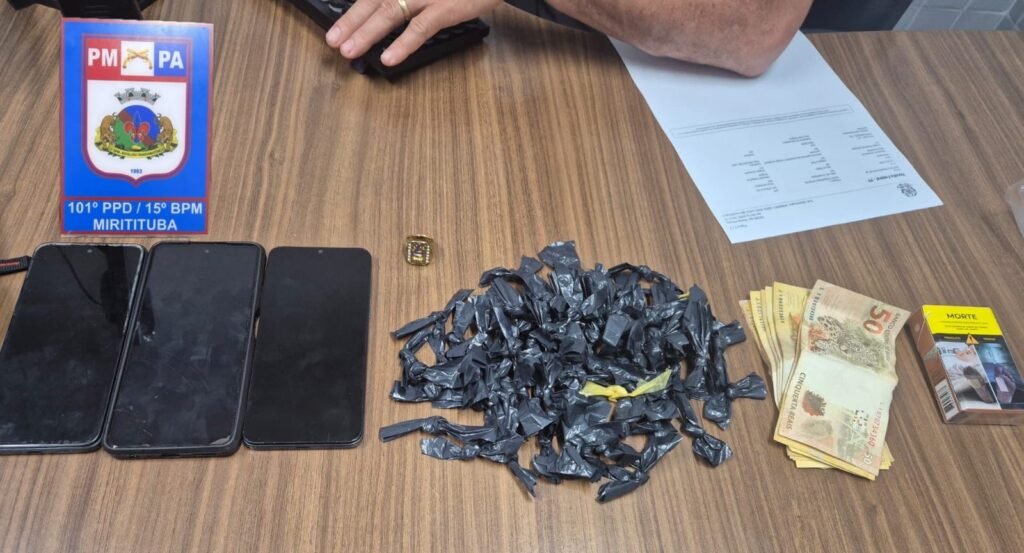 Além da droga, também foram apreendidos dois aparelhos celulares e a quantia de R$ 380,00 em espécie, distribuída em cédulas fracionadas. Os celulares apreendidos com o menor foram um Motorola Moto E13, de cor azul, e um Xiaomi Redmi, modelo 21061119AG.