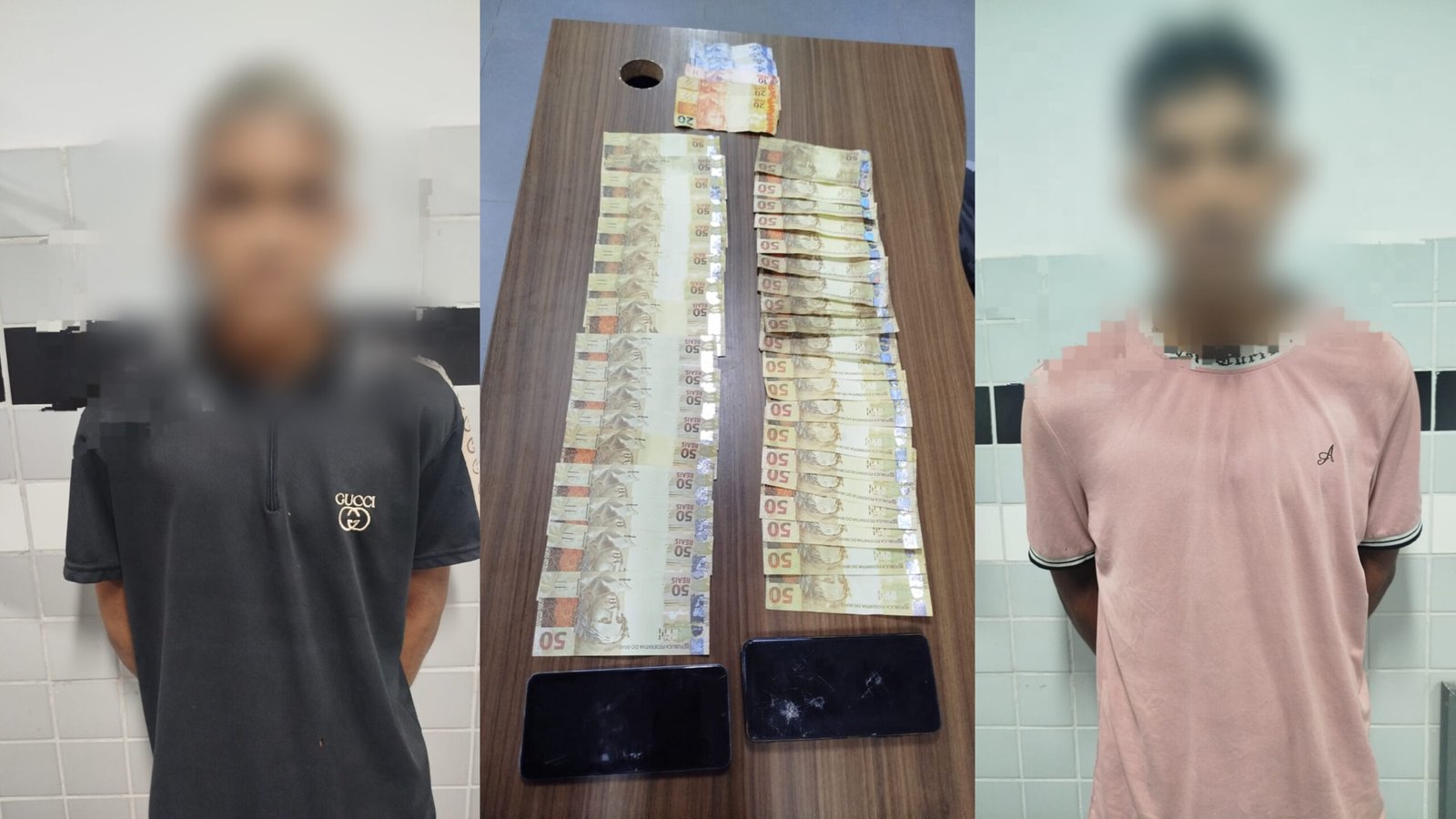 Durante a abordagem, os policiais constataram que o suspeito portava quatro cédulas de R$ 50,00, com indícios de falsificação. Questionado, L. da S. S. confirmou que as notas seriam falsas e informou tê-las adquirido de um adolescente identificado pelas iniciais M. de A. N..