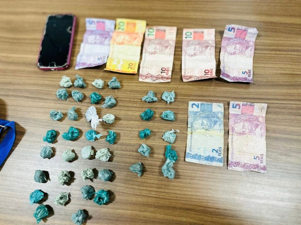 No endereço indicado, a genitora do menor, identificada pelas iniciais M.L.N., autorizou a entrada da guarnição no imóvel e afirmou desconhecer as condutas praticadas pelo filho. Durante as buscas no quarto do adolescente, os policiais localizaram, dentro de uma bolsa, 30 papelotes de substância análoga à maconha, pesando aproximadamente 36 gramas.