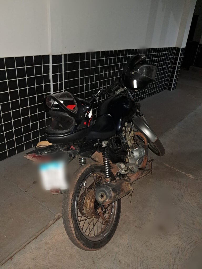 Durante a fuga, o condutor da motocicleta, posteriormente identificado pelas iniciais L.F.L.N., menor de idade, perdeu o controle do veículo nas proximidades da Cooperativa Garimpar e caiu ao solo. Na abordagem pessoal, os policiais encontraram com o garupa, identificado pelas iniciais D.S.F., 10 embalagens contendo substância análoga à maconha, totalizando aproximadamente 13 gramas, além da quantia de R$ 57,00 em dinheiro.