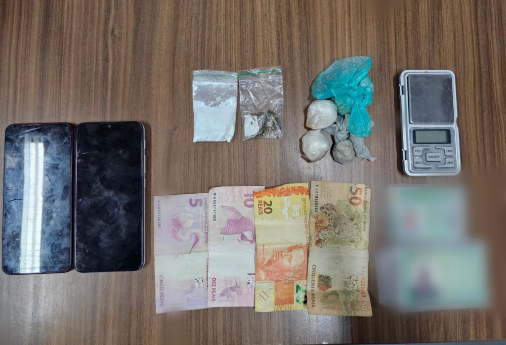 O abordado foi identificado como Welliton Michel Miranda Monteiro, de 23 anos. Durante a busca pessoal, os policiais encontraram papelotes de substância análoga a crackR$ 60,00 em dinheiro e um aparelho celular.