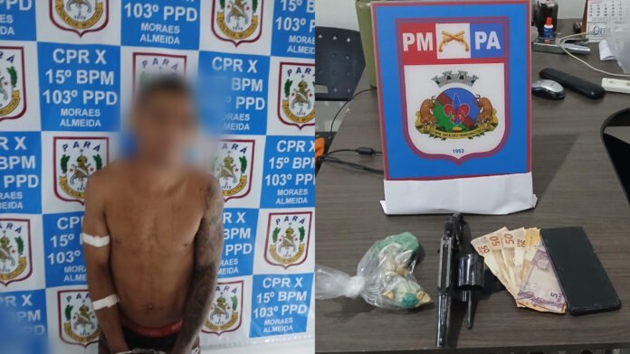 Por volta das 23h desta quinta-feira (16), policiais militares prenderam Gabriel Júnior Ferreira Pereira, de 24 anos, suspeito de tráfico de drogas e porte ilegal de arma de fogo, na comunidade do Cuiú-Cuiú, região garimpeira do município de Itaituba, no sudoeste do Pará.