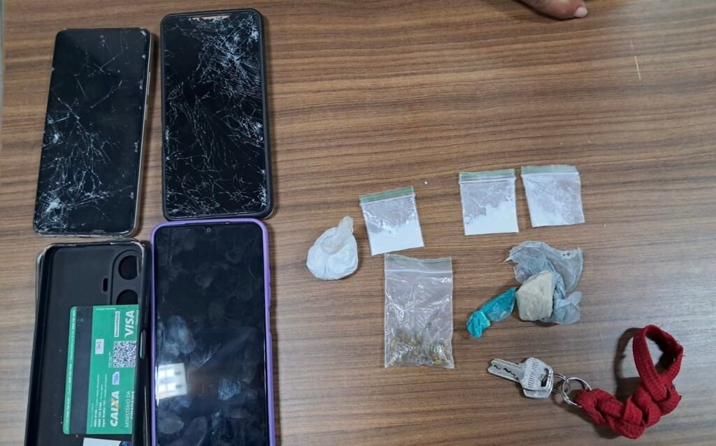 Com autorização gravada em vídeo pela proprietária da residência, os policiais realizaram buscas e encontraram duas porções de cocaínaduas pedras de crack e um papelote de maconha dentro do imóvel, além de dois papelotes de cocaína com Francisco. Também foram apreendidos quatro aparelhos celulares em posse dos suspeitos.