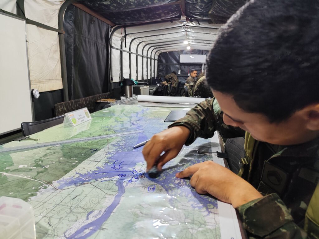 O exercício foi conduzido a partir de um Posto de Comando Móvel (PCM), estrutura tática equipada com viaturas militares e sistemas computacionais de última geração. A operação simulada reproduziu com fidelidade situações de campo, permitindo avaliar, em tempo real, o desempenho, a agilidade e a capacidade de comando e controle da tropa — atributos que reafirmam o 53º BIS como referência estratégica no cenário amazônico.