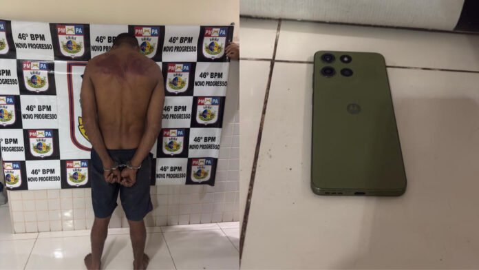 Por volta das 21h15 desta segunda-feira (27), no bairro Santa Luzia, em Novo Progresso, no sudoeste do Pará, a Central do 46º BPM acionou uma guarnição da Polícia Militar para averiguar uma ocorrência envolvendo um suspeito detido por populares, acusado de furtar dois aparelhos celulares.