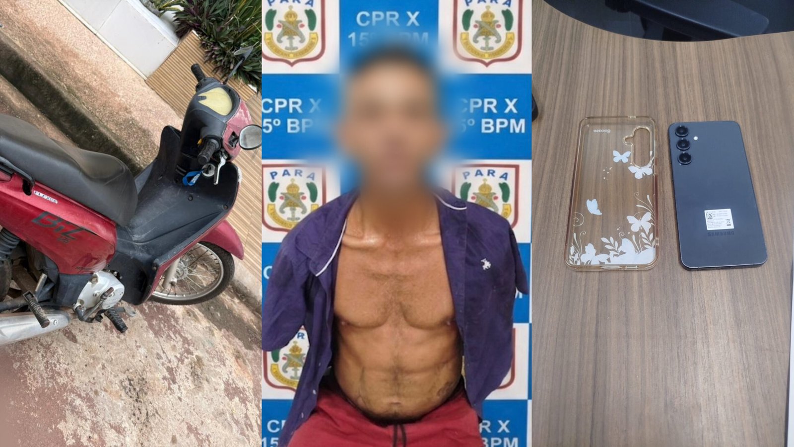 O suspeito levou diversos pertences das vítimas, incluindo um aparelho celular iPhone 12 Pro Max, de cor cinza com capa rosa, além de uma motocicleta Honda Biz 125, vermelha. Outros seis celulares também foram roubados.
