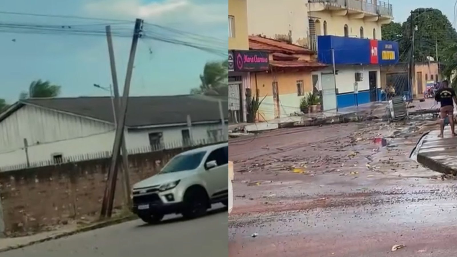 Na tarde desta terça-feira (26), uma forte ventania atingiu Itaituba, no sudoeste do Pará, derrubando um poste de energia elétrica na Travessa São José, entre a 33ª e 34ª ruas, no bairro Santo Antônio. Outro poste ficou inclinado, sustentado apenas pelos fios. Veículos estacionados próximos precisaram ser removidos pelos proprietários para evitar acidentes.