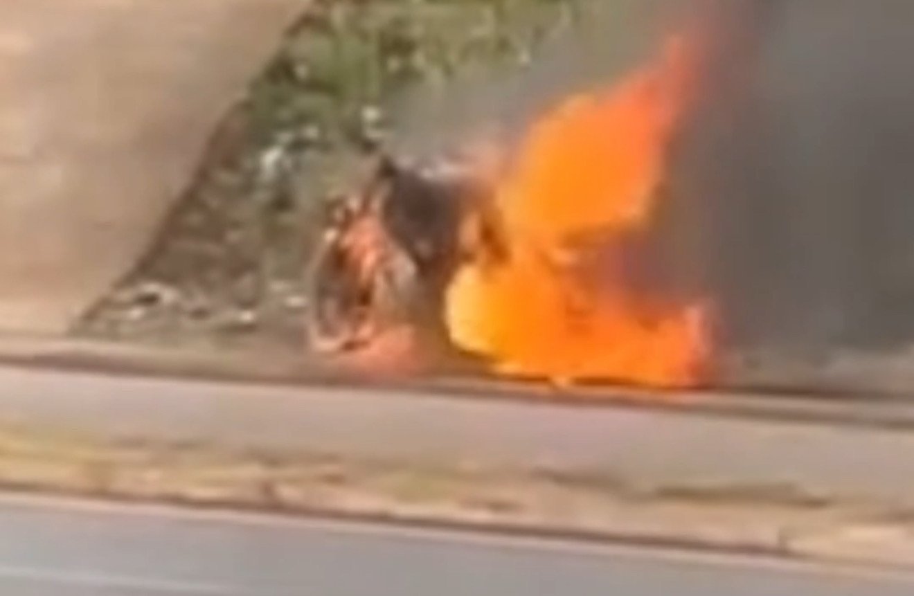 Populares registraram o momento em que as chamas consumiam o veículo. Ainda não há informações sobre as causas do incêndio nem sobre feridos.