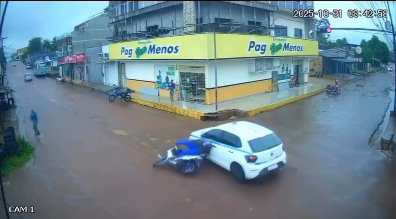 VÍDEO; Motociclista avança sinal vermelho e colide com táxi em Itaituba