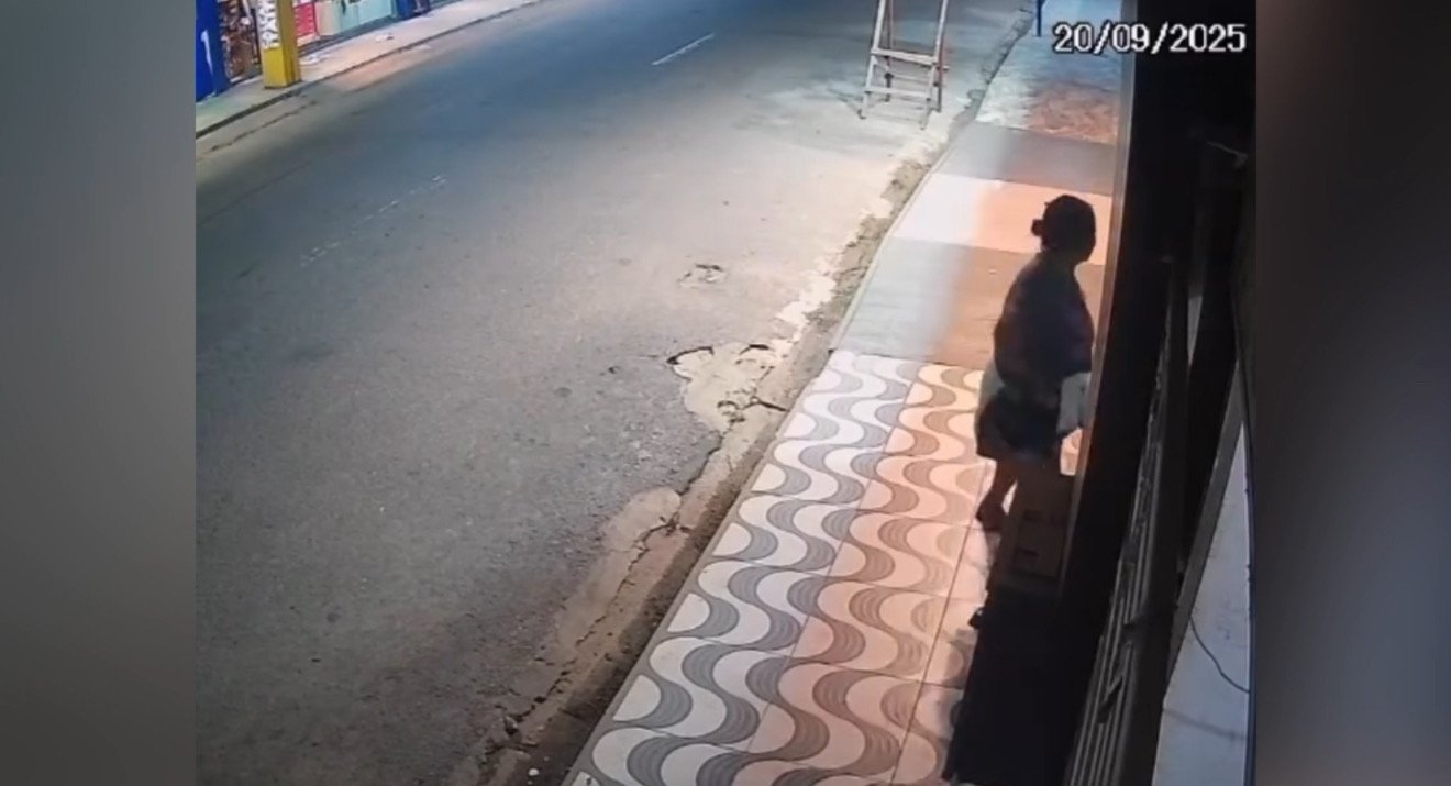 Na madrugada deste sábado (20), câmeras de segurança registraram uma mulher tentando arrombar uma loja na travessa João Pessoa, em Itaituba.