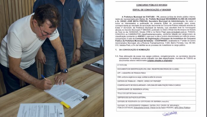 Em entrevista à equipe de reportagem, o prefeito de Itaituba, Nicodemos Aguiar, comentou sobre a assinatura do Edital de Convocação nº 004/2025, nesta quarta-feira (4) referente ao Concurso Público nº 001/2024.