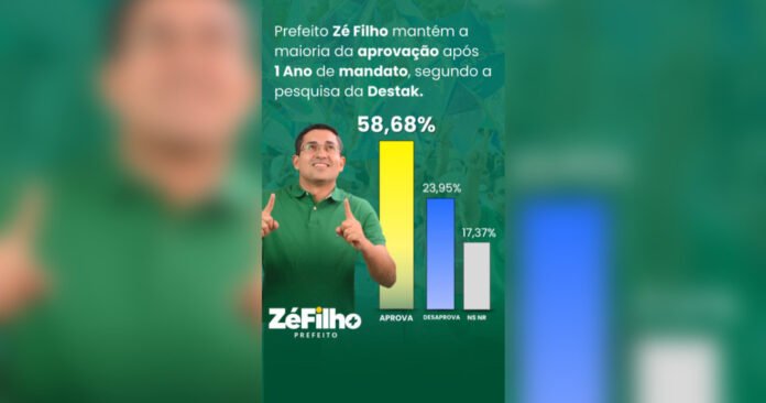 De acordo com a pesquisa, 58,68% dos entrevistados aprovam o governo Zé Filho, enquanto 23,95% desaprovam a atual administração. Outros 17,37% não souberam ou preferiram não opinar. O resultado mostra que a gestão mantém uma maioria de apoio entre a população, refletindo uma avaliação positiva do trabalho desenvolvido até o momento.